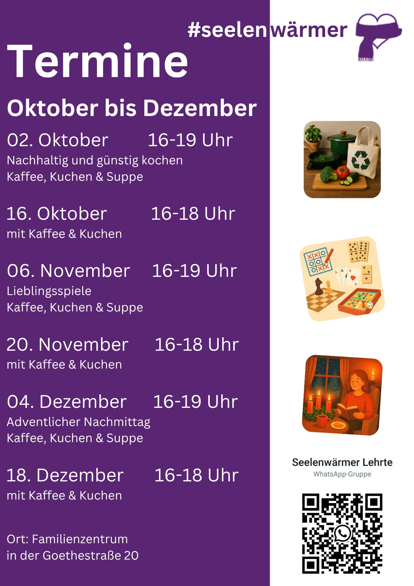 Der QR-Code im Bild führt zur Seelenwärmer-WhatsApp-Gruppe, in der weitere Infos und Erinnerungen an die Termine verschickt werden.